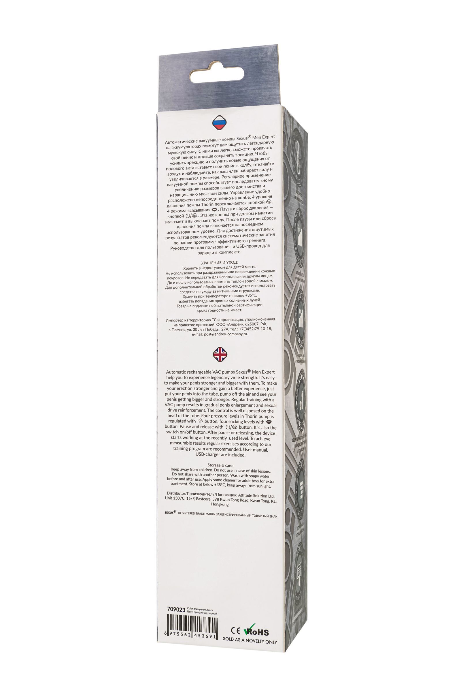 Погрузитесь в мир уверенности и легендарной силы с автоматической вакуумной помпой Thorin Sexus Men из серии Expert! Это инновационное устройство создано, чтобы помочь вам достичь максимальных результатов в вашей сексуальной жизни. Прокачайте свою мужскую силу, продлите вашу эрекцию и получите новые ощущения от полового акта – просто вставьте ваш пенис в колбу, активируйте помпу и наблюдайте, как она создает вакуум, стимулируя кровоток и увеличивая размер вашего члена. Управление удобно расположено прямо на колбе, что делает использование помпы максимально простым и удобным. С 4 уровнями давления и 4 режимами всасывания, вы сможете настроить интенсивность и длительность тренировки под свои потребности. Регулярные тренировки с вакуумной помпой способствуют последовательному увеличению размеров вашего достоинства и наращиванию мужской силы. В комплекте с помпой вы получаете: насадку для помпирования из высококачественного силикона черного цвета, насадку для мастурбации из нежного материала TPE телесного цвета, руководство по использованию, программу эффективного тренинга, USB-провод для зарядки. Рабочая длина - 19 см.