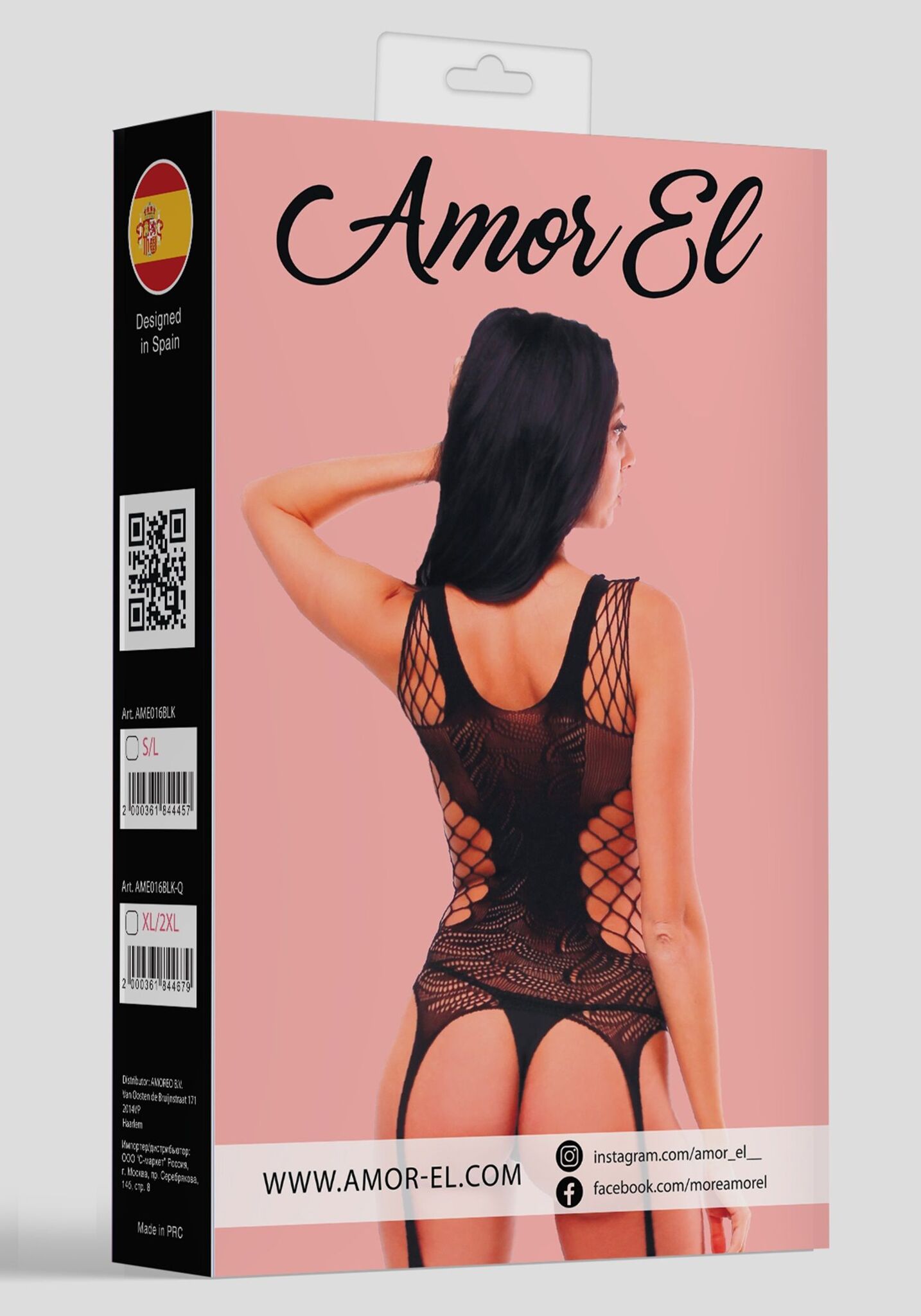 Ines - боди-комбинезон с имитацией чулок. Дизайн в виде крупной сетки дополнен контрастным полупрозрачным рисунком. Благодаря использованию большего количества нейлона, белье сохраняет очертания, не деформируется, растягивается и выгодно облегает фигуру. Даже после сильного растяжения, оно не деформируются, и всегда принимает исходную форму. Изделие не вызывает аллергию, не окрашивает. Уход и стирку следует производить в соответствии с инструкцией завода-изготовителя на этикетке. Трусики не входят в комплект!