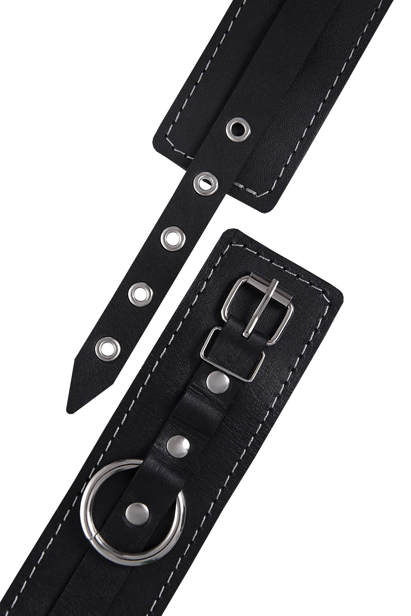 Готовы играть по-взрослому? Не бойтесь своих желаний! Основатели бренда уверены: лучший способ избавиться от искушения - поддаться ему! Добавьте пикантную деталь в ролевую игру и воплотите самую смелую сексуальную фантазию в реальность! Эти кожаные оковы с белой отстрочкой могут стать стильным аксессуаром, а могут послужить вашим целям по своему прямому назначению. Частичное обездвиживание и невозможность двигать руками или ногами дают вам полную власть над партнером! Наличие двух карабинов и колец позволяет использовать изделие как раздельно – аксессуар-манжеты, так и как оковы для фиксации. К широким металлическим кольцам также можно присоединить и другие аксессуары при помощи карабинов. Благодаря универсальному размеру оковы могут использоваться и мужчинами, и женщинами. Размер легко регулируется с помощью металлических пряжек, органично вписывающихся в общий стиль. Длина манжет - 25 см, ширина - 5,5 см. Длина сцепки - 17см.