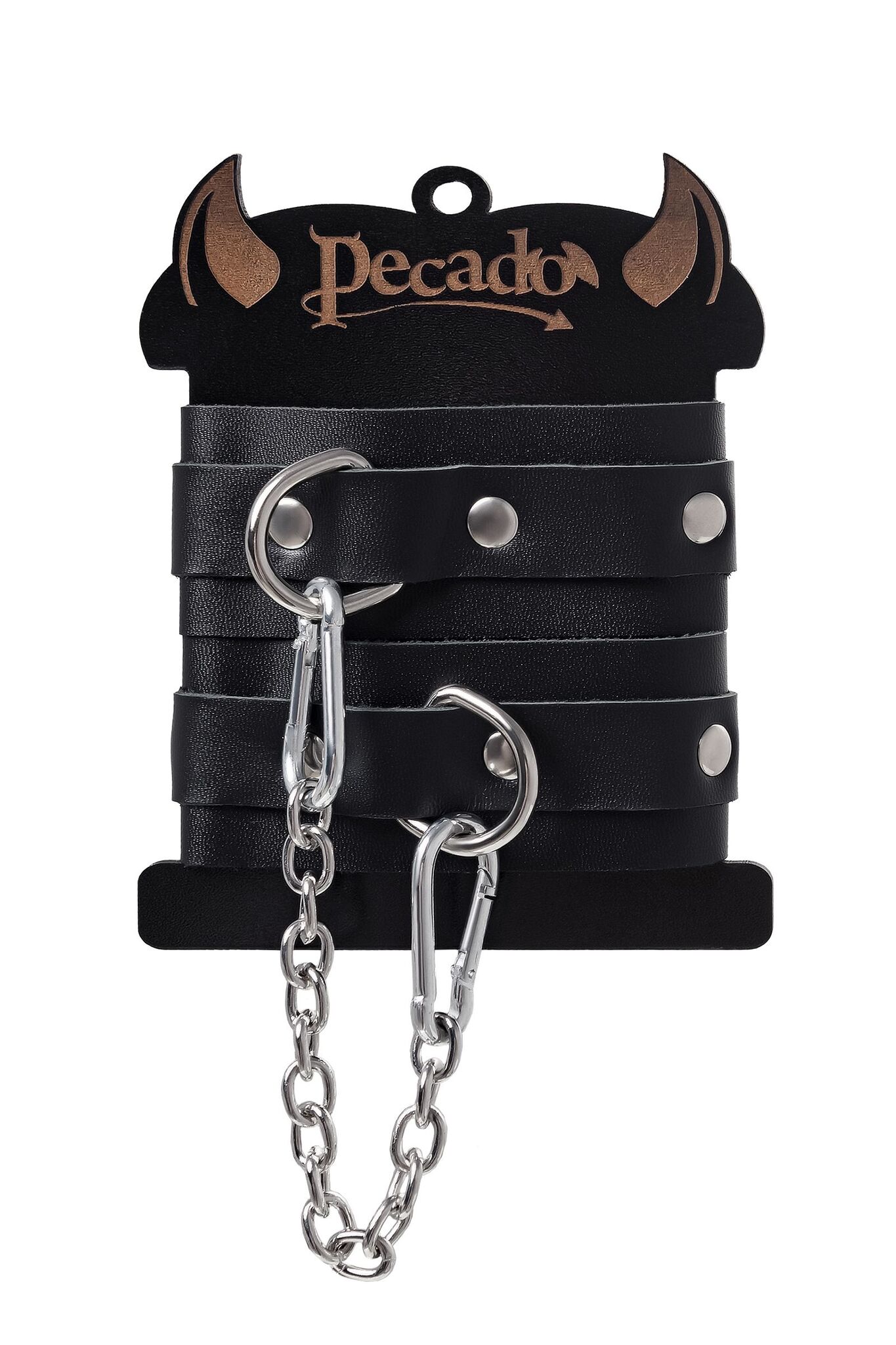 В поисках прочных оков для миниатюрных щиколоток? Тогда обратите внимание на эту модель от российского производителя Pecado. Они идеально созданы для обладательниц узких ножек. С ним вы легко зафиксируете и обездвижите сабмиссива. Каждая деталь аксессуара изготовлена с огромным трепетом вручную. Материал оков мягкий, прочный, не оставляет следов на теле. Крепкие люверсы на каждом ремешке и замок помогают легко расстёгивать и застегивать девайс. Манжеты оков соединяются между собой короткой, металлической цепью. Отлично подходят и неопытным парам, и знатокам БДСМ-культуры. Погрузитесь в мир пикантных удовольствий! Вместе с Pecado. Длина манжет – 15 см. Ширина ремешка – 4 см. Длина сцепки – 19 см.