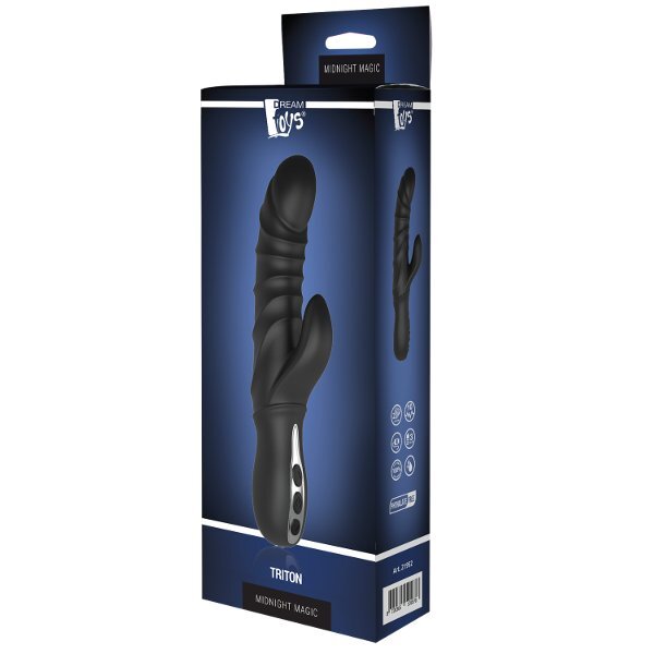 Triton имеет мягкий кончик, изогнутый ствол с заметными стимулирующими выступами, а также клиторальный отросток. В стиле других игрушек серии Midnight Magic, Triton полностью черный с хромированной деталью в основании. Изготовленный из силикона, этот двойной вибратор бархатисто-мягкий на ощупь, а кнопки легко найти в основании с металлическим покрытием. С двумя моторами этот дуо-вибратор обязательно будет производить сильные вибрации как в стволе, так и в стимуляторе клитора, а с 7 ритмами вибрации и 3 скоростями вы найдете идеальную вибрацию на любой вкус. Не стесняйтесь использовать Triton в ванне или душе, так как он на 100% водонепроницаем. В комплекте магнитный USB-кабель для подзарядки. Продолжительность зарядки 3 часа. Продолжительность использования 60 минут на максимальной скорости. Безопасен для тела, не содержит фталатов и латекса.