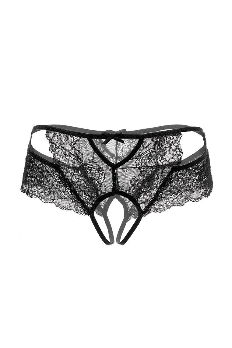 Эротические трусики кружевные, эластичные, декорированы атласными бантиками и миниатюрными кольцами по бокам. Свободный кружевной край. Допускается замена кружева на аналогичное.