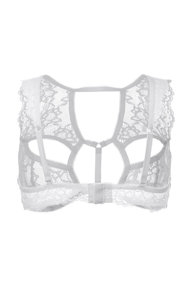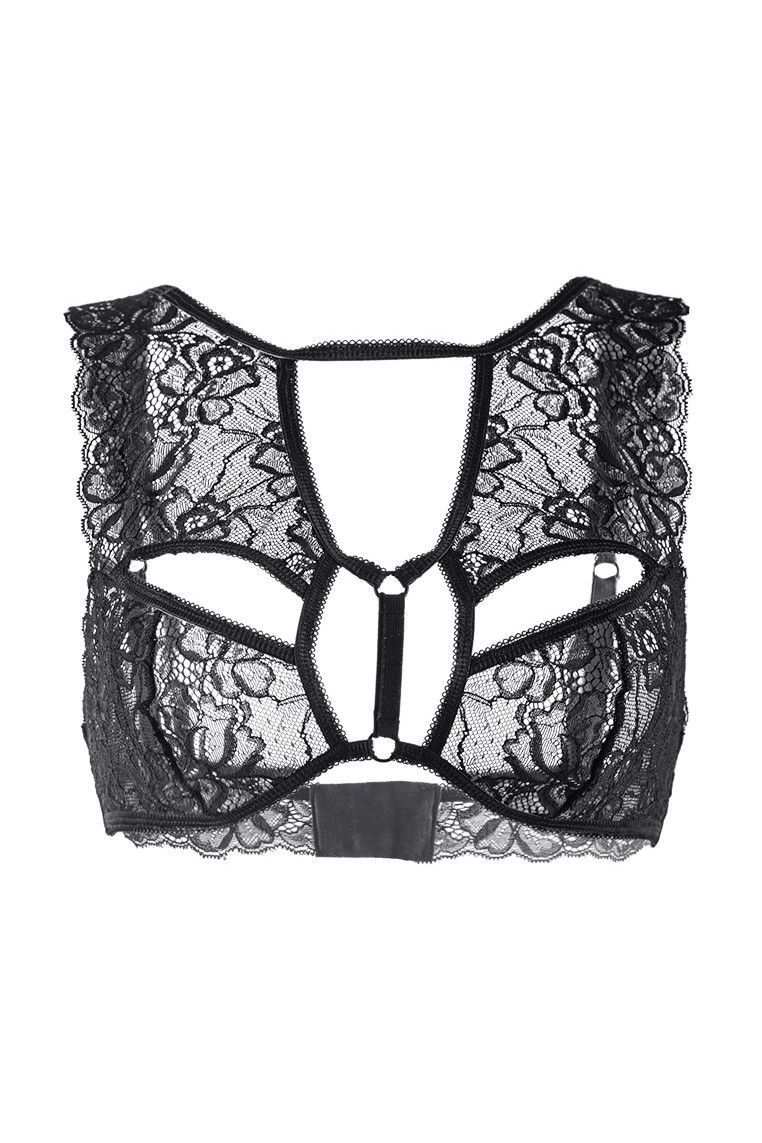 Бралетт. Мягкий кружевной топ с декоративными вырезами и перемычками. Регулируемые бретели. Двухрядная застежка на спине.