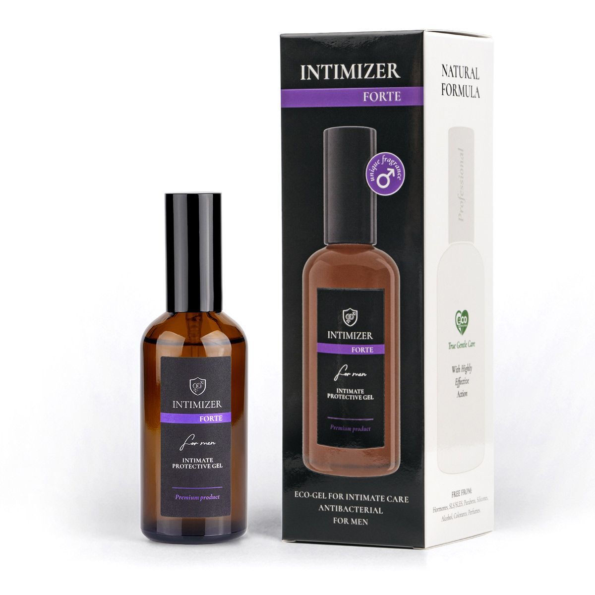 Гель для интимной гигиены мужской INTIMIZER – это насыщенный ухаживающий комплекс 8 в 1 для поддержания мужского интимного здоровья. Не имеет аналогов. Мощная концентрация натуральных компонентов работает как sos-средство от сухости, от запаха, как антибактериальная защита. Предотвращает воспалительные процессы и развитие инфекций. Увлажняющая формула на водной основе улучшает комфорт романтических отношений. Гель-уход INTIMIZER на 100% заменяет широкий арсенал привычных средств. Всё в одном! INTIMIZER FORTE – это усиленная высококонцентрированная формула широкого спектра действия, профессиональная линия средств бренда INTIMIZER. Выше антибактериальная активность – быстрое действие для более надежной защиты. Усиленный комплекс пребиотиков и постбиотиков последнего поколения. В 2 раза более интенсивное увлажняющее действие. Еще больше уверенности с двойной концентрацией премиального феромона ISO E Super. Идеален на каждый день для интимной гигиены мужчин. После нанесения не требует смывания, оказывая длительное защитное, ухаживающее и освежающее действия. Способствует ускоренному заживлению и укреплению стенок сосудов. Первая помощь при дискомфорте (покраснение, сухость, зуд, жжение) половых органов в период усиленных физических нагрузок и стресса для защиты микрофлоры при смене полового партнера при ослаблении иммунитета восстановление после приёма антибиотиков профилактика при посещении бассейнов и саун снятие раздражения после депиляции (бритья). Инновационная формула INTIMIZER для мужчин – научная разработка лаборатории НПК ЭВИПРО. Имеет свидетельство гос. регистрации. Одобрена урологами. Большое количество активных компонентов в легко усваиваемой форме обеспечивают широкий заявленный спектр действия: Smart частицы серебра Молочная кислота Prebiulin, Inulin, Woresana, Д-пантенол Aquaxyl, Fucogel Пальмария пальмата Биосахаридная смола Hydrovance Гидролат Календулы.