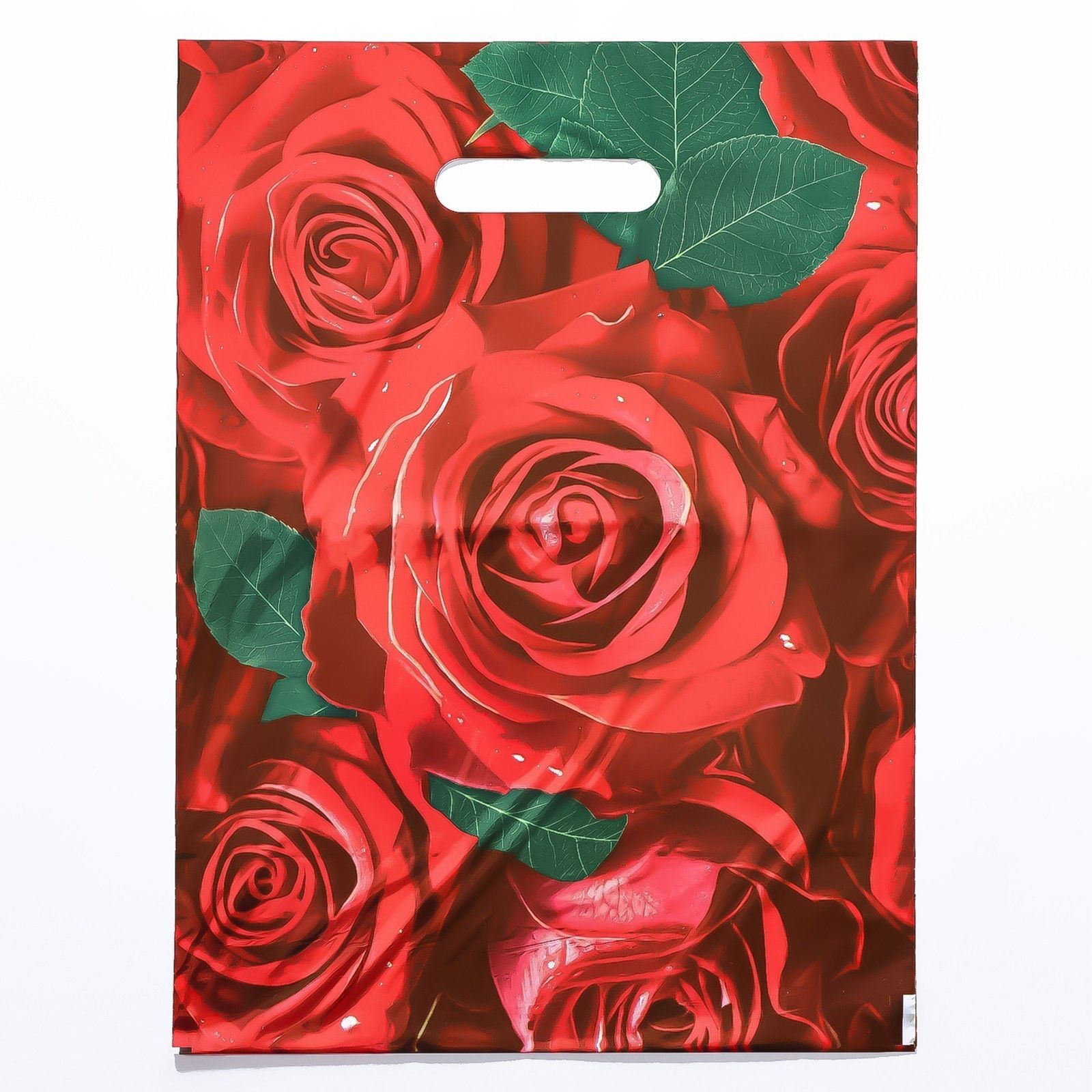 Пакет с цветочным принтом и вырубной ручкой (30х40 см).