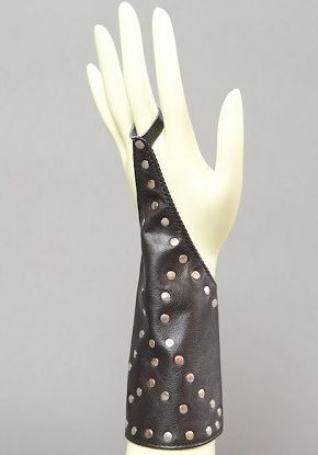 Пара кожаных проклёпанных нарукавников с петелькой на пальчик. Стильные нарукавники выполнены из натуральной мягкой кожи высокого качества. Они станут отличным дополнением вашего сексуального образа. Нарукавники крепятся застежкой - липучкой.