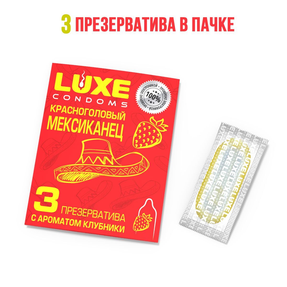 Чтобы услышать восторженное «Dios mío!» от своей мучачос, вам нужно лишь одно… Точнее, один… Один из трёх презервативов «Красноголовый мексиканец» от Luxe! Радуя бодрящим клубничным ароматом, обеспечивая непревзойдённую защиту от ЗППП, гарантируя комфорт, они позволят вам получить все 33 удовольствия от близости. Три латексных презерватива с накопителем и смазкой в яркой фирменной упаковке. Гладкая поверхность и силиконовая смазка для качественного и длительного скольжения. Аромат клубники добавит романтики в ваши отношения! Наслаждаться процессом, не беспокоясь о безопасности, легко с презервативами LUXE «Красноголовый мексиканец». Необычная упаковка с креативным дизайном и многообещающим названием также призвана сделать вашу близость незабываемой. Ширина - 52+/-2 мм. Толщина стенок - 0,06 мм. В упаковке - 3 шт. - Регистрационное удостоверение РФ: РЗН 2019/8088 - Дата регистрации медицинского изделия: 04.06.2024 г. - Срок действия регистрационного удостоверения: бессрочно - Представитель изготовителя медицинского изделия: ООО ТК «Максима», 119048, г. Москва, ул. Ефремова, д. 20, этаж подвал, пом. II, комн. 1, офис 2