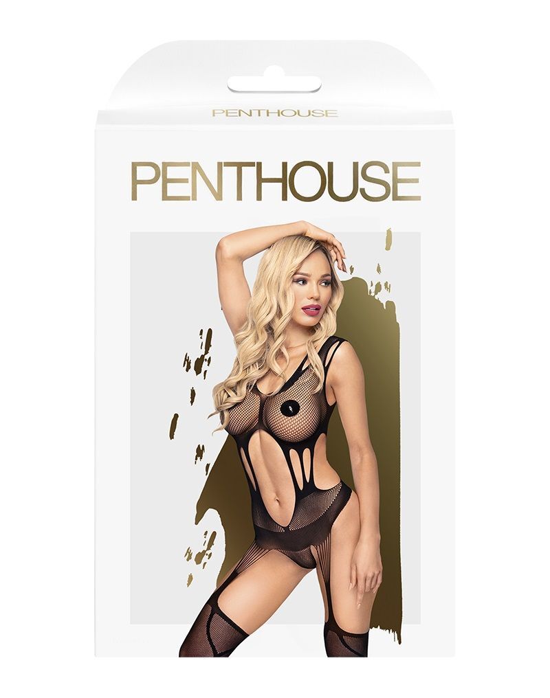 Боди-комбинезон в мелкую сетку с оригинальным рисунком, подчеркивающим достоинства фигуры и скрывающим ее недостатки.