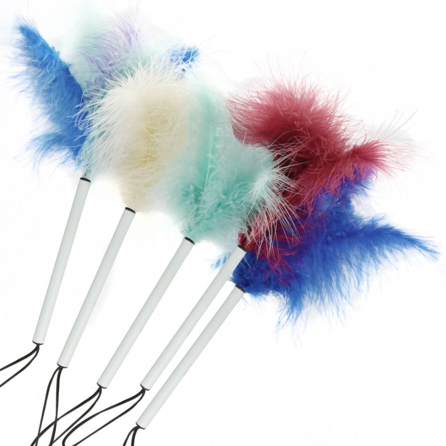 Щекоталка состоит из металлической рукояти и ярких цветных перышек. Длина ручки - 14 см.