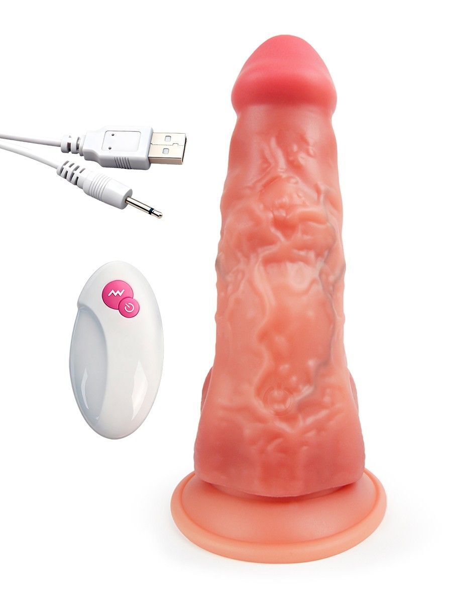 Роскошный вибромассажёр с дистанционным пультом управления для тех, кто выбирает большие размеры и любит ощущение максимальной заполненности. Объёмная головка, мощный ствол с выпуклостями и «пульсирующими» венками, мошонка с рельефной поверхностью притягивают и разжигают желание. Разнообразные режимы вибрации усиливают возбуждение. 10 режимов вибрации. Секс-игрушка гнётся в разные стороны, что существенно расширяет возможности её использования. Подходит для различных видов интимной близости и всевозможных поз. Широкая присоска надёжно фиксирует гаджет на ровной поверхности. Благодаря мягкому материалу вибромассажёр можно мять, сжимать и скручивать. Изделие просто в использовании, не требует специального ухода. Рабочая длина - 17 см.