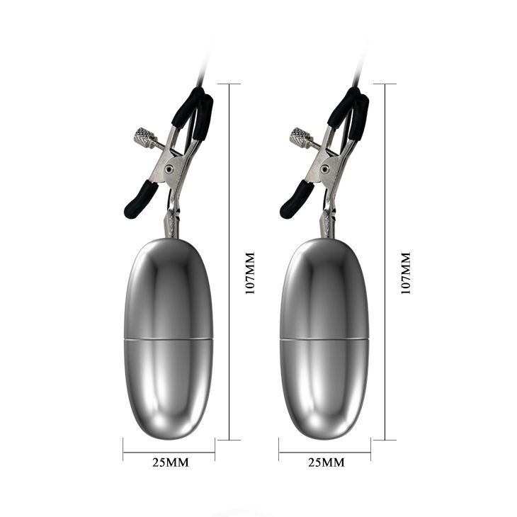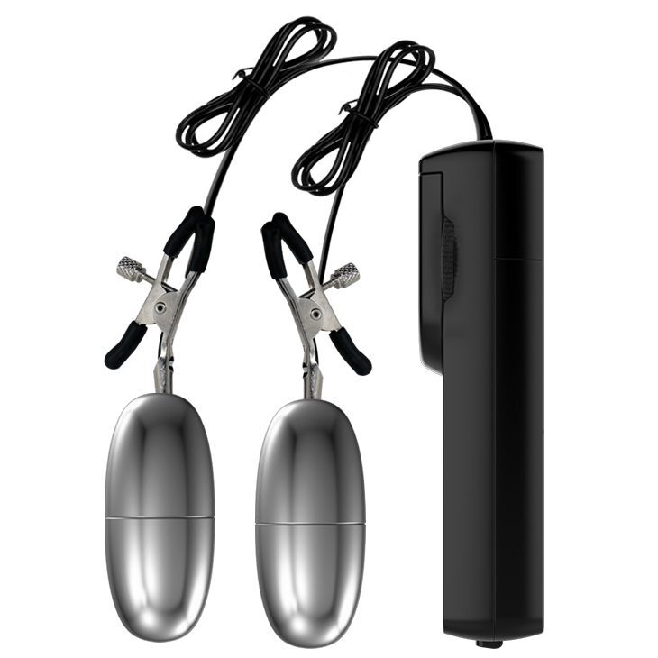 Выберите зажимы на соски, чтобы внести нотку игры в ваш интим. Во-первых, это невероятно возбуждает эрогенную зону сосков груди как женщины, так мужчины. Во-вторых, секс-игрушка может использоваться в качестве эротического украшения, что позволит еще больше возбудиться. Зажимы также оснащены виброэлементом, на них расположены мягкие накладки, которые препятствуют микротравмам сосков. Степень сжатия сосков регулируется при помощи винтиков. Длина каждого зажима вместе с пулей - 10 см.