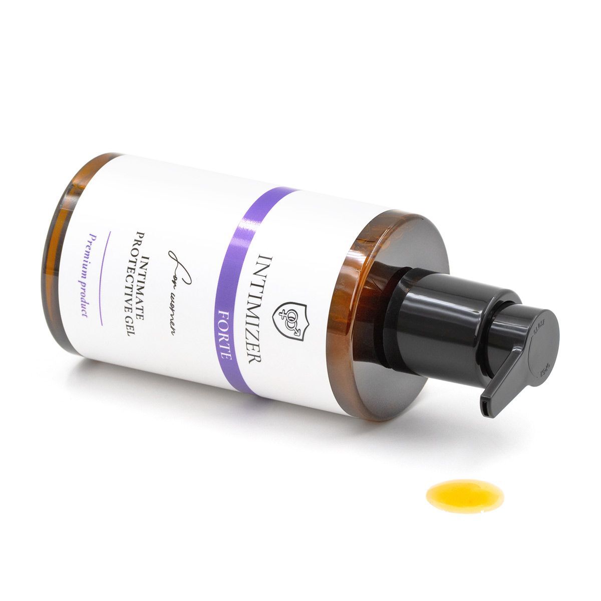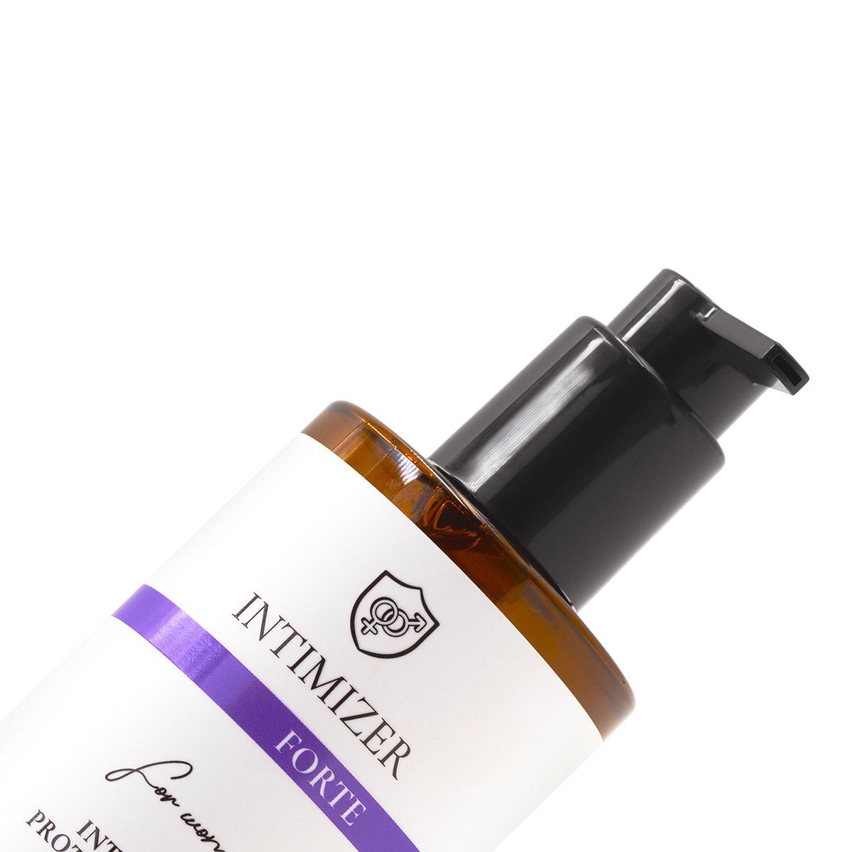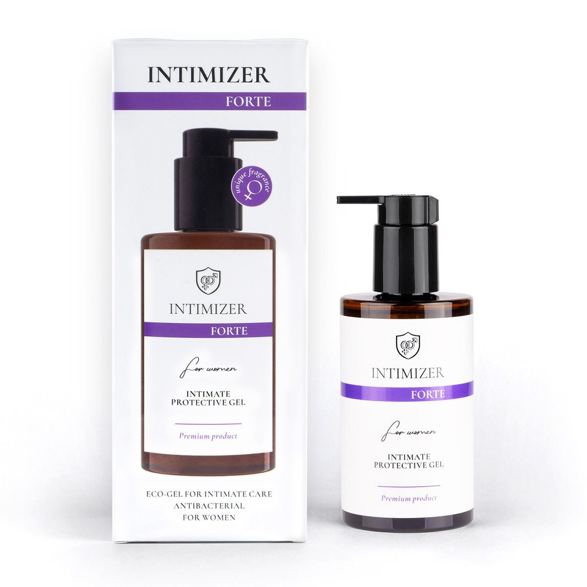 Новое поколение средств для интимной гигиены от бренда INTIMIZER. Богатый натуральный состав - не имеет аналогов по количеству и концентрации активных компонентов! Комплексно выполняет все необходимые функции по поддержанию интимного здоровья и комфорта. Восстанавливает микрофлору. Оказывает длительное освежающее и ухаживающее действия, а также имеет дополнительные терапевтические свойства. Одобрен гинекологами. Эко-гель INTIMIZER на 100% заменяет привычный интимный уход. INTIMIZER FORTE – это усиленная высококонцентрированная формула широкого спектра действия, профессиональная линия средств бренда INTIMIZER. Более быстрая и надежная защита против широкого спектра патогенных микроорганизмов за счет увеличенной (на 50%) концентрации Smart частиц серебра, 30ppm. Ускоренное (на 35%) восстановление здорового микробиома интимной зоны и улучшенная профилактика возникновения дисбактериоза за счет комплекса пребиотиков и постбиотиков. В 2 раза более интенсивный увлажняющий эффект за счет еще одного нового элемента формулы – водосберегающей молекулы Aquaxyl. Еще больше привлекательности с двойной концентрацией феромона Iso E Super. Идеален для ежедневного применения и в качестве SOS-средства. Наносится и не требует смывания. Обеспечивает длительный комфорт и защиту. Предотвращает воспалительные процессы и инфекции, развитие дисбактериоза и вагинита. Помощь от молочницы. Заживляет микротрещинки, способствует ускоренному восстановлению после родов и операций. Спасает от сухости - увлажняет, питает, поддерживает эластичность и упругость. Деликатно отбеливает и омолаживает, сохраняя интимную эстетику. Гель на водной основе улучшает комфорт романтических отношений. Активные компоненты: Smart частицы серебра Молочная кислота Комплекс пребиотиков и постбиотиков (PREBIULIN, INULIN, WORESANA), Д-пантелол Fucogel, Критмум морской, Hydrovance, Биосахаридная смола, Гидролат календулы Гидролат Ромашки. Не содержит синтетических отдушек. Имеет чувственный аромат пачули.